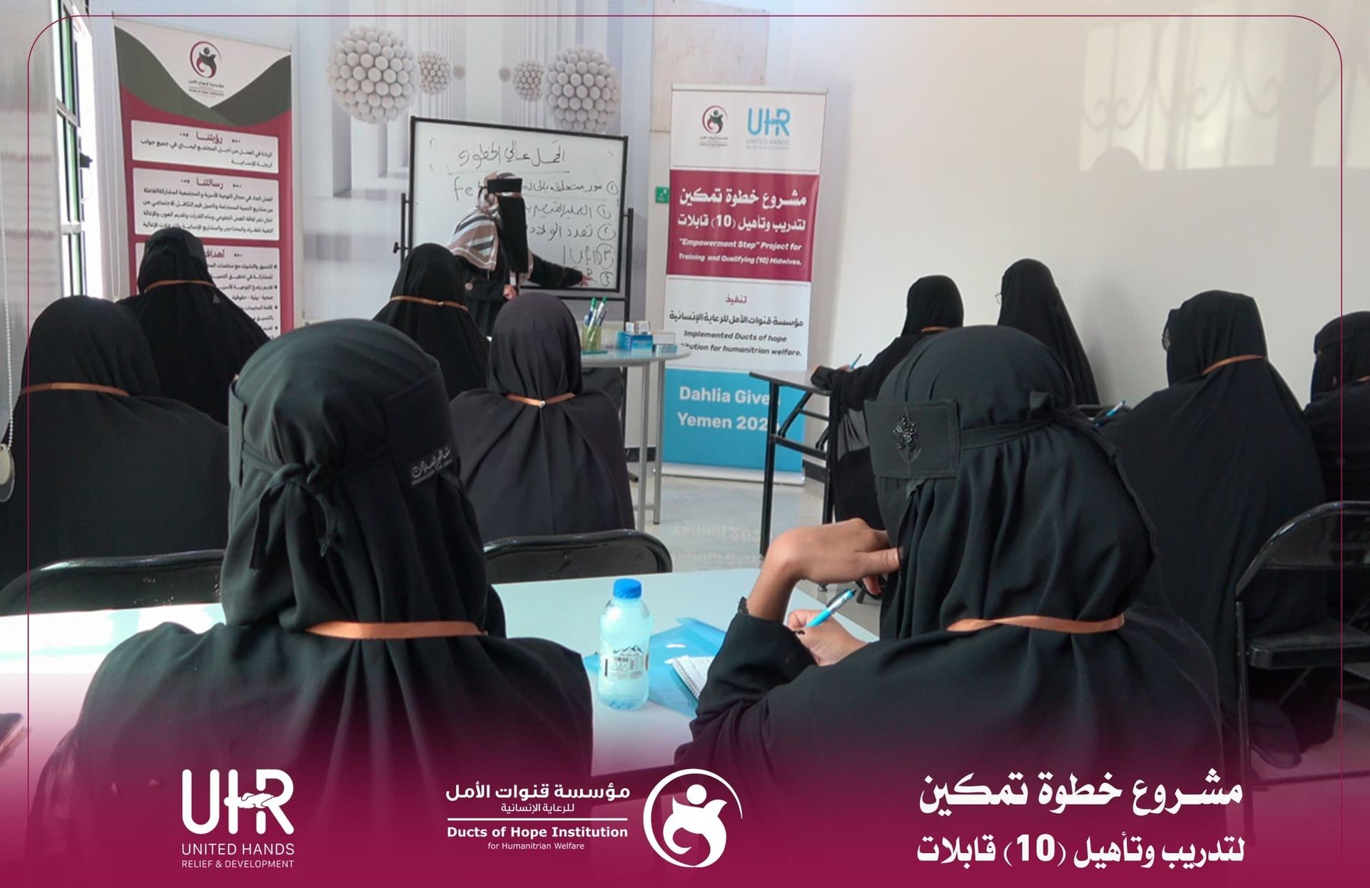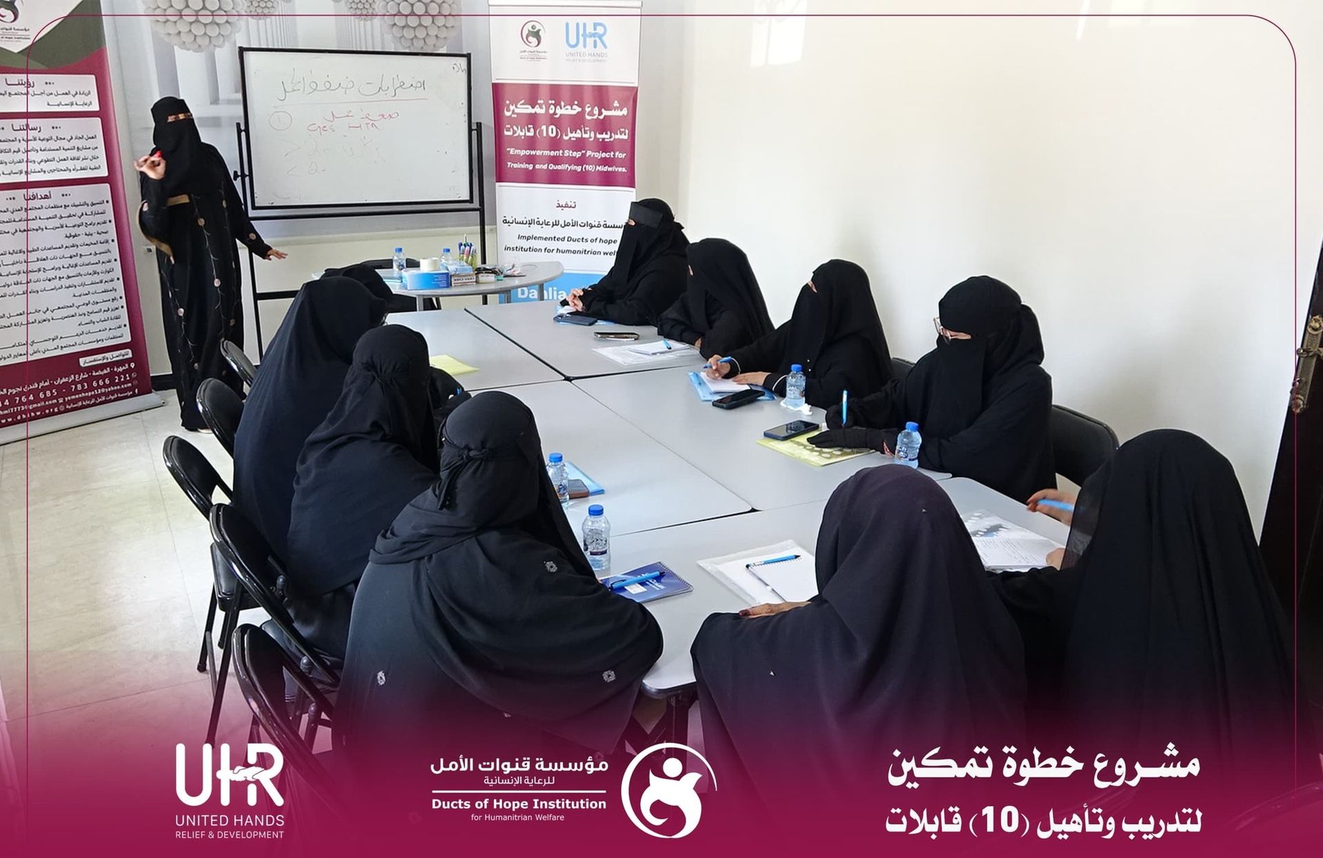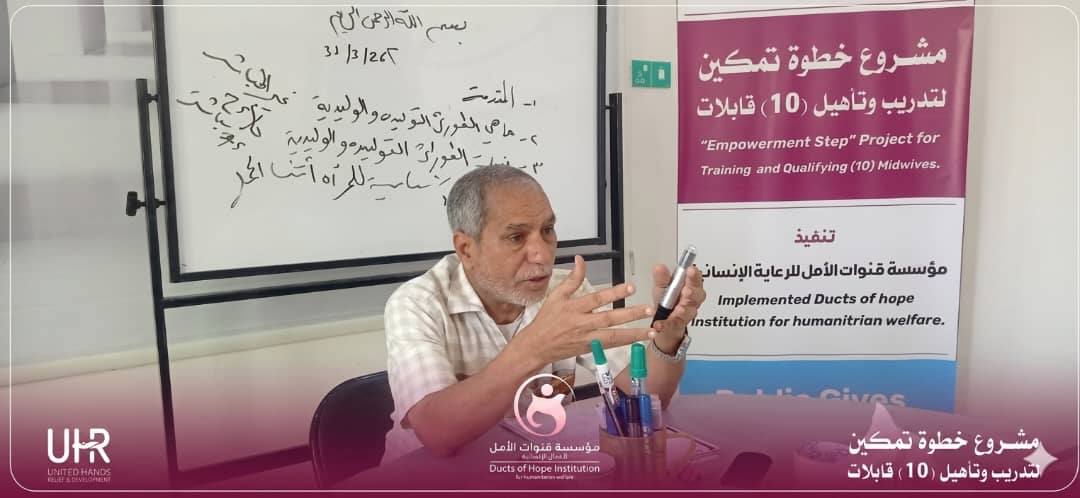 اختُتم في مدينة الغيضة بمحافظة المهرة الجانب النظري من برنامج تدريب عشر قابلات ضمن مشروع "خطوة تمكين" الذي تنفذه مؤسسة قنوات الأمل للرعاية الإنسانية بدعم وتمويل من منظمة الأيادي المتحدة للإغاثة والتنمية في إطار الجهود الهادفة إلى تعزيز قدرات الكوادر الصحية العاملة في مجال رعاية الأمومة والطفولة.