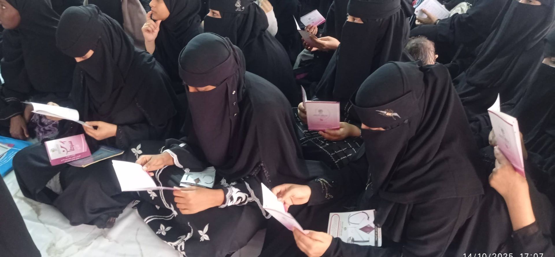 وقدمت الأستاذة انتصار العبيدي محاضرة تثقيفية حول سرطان الثدي تطرقت فيها إلى الأسباب وطرق الوقاية وأهمية الفحص المبكر، فيما قدّمت الأستاذة هناء سيف شرحًا عمليًا لكيفية إجراء الفحص الذاتي للثدي ضمن إطار التمكين الصحي للمرأة.